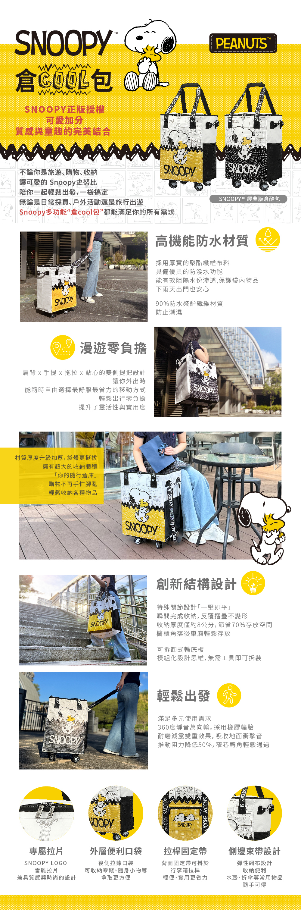 三用功能,可肩背、手提、拖拉,減輕出行負擔