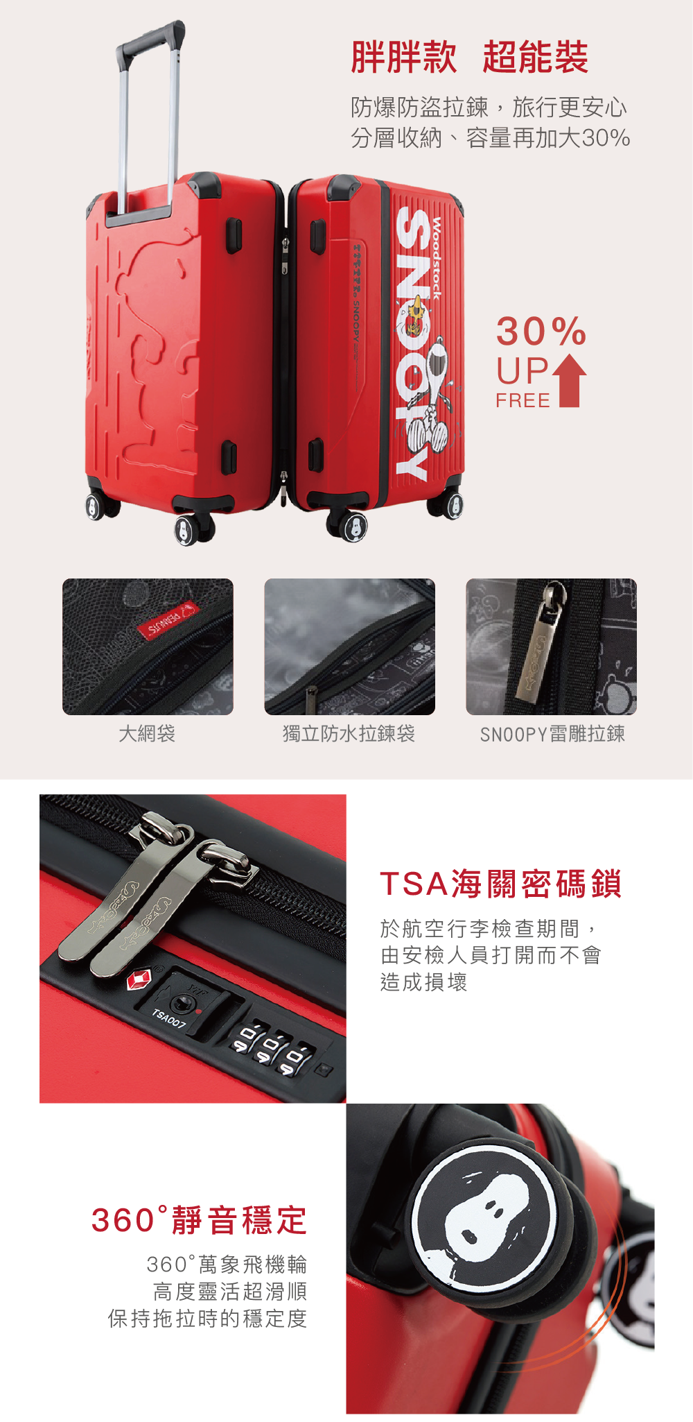 • 防爆防盜拉鍊,搭配SNOOPY雷雕刻字